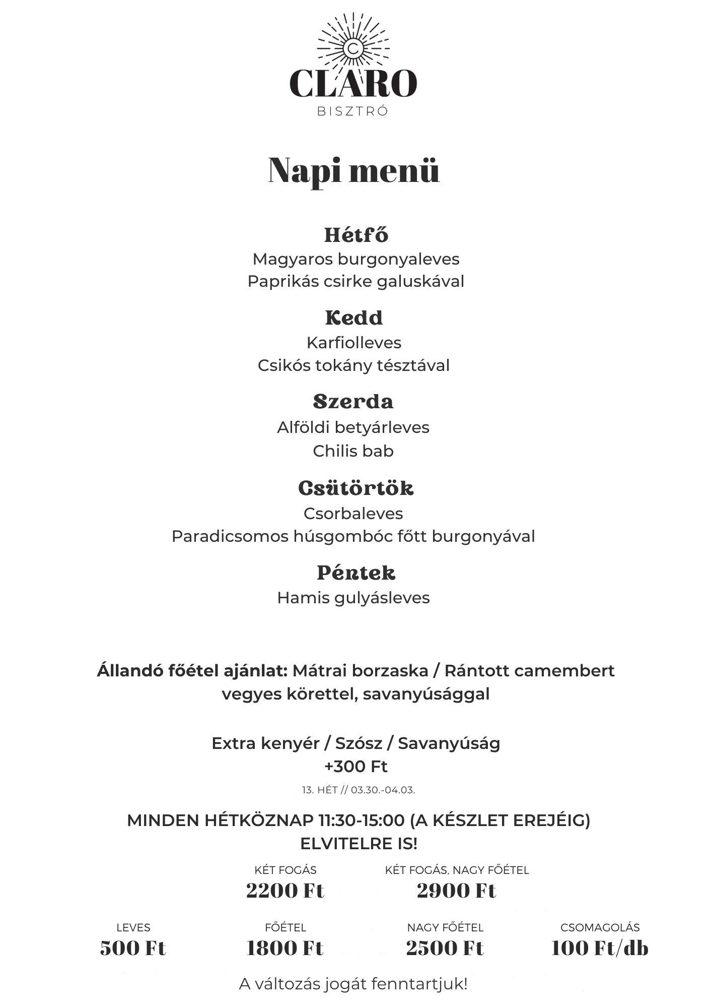 © 2024 Claro Bisztró. Minden jog fenntartva.